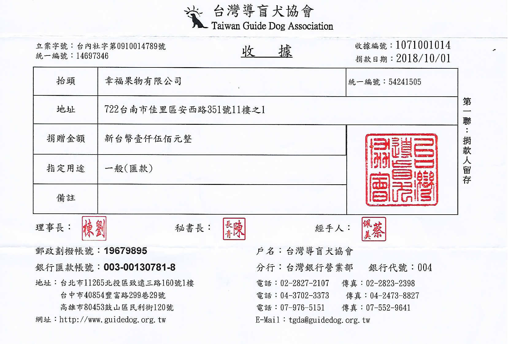 幸福果舖x台灣導盲犬協會 一塊做公益106年度(2017)活動捐贈