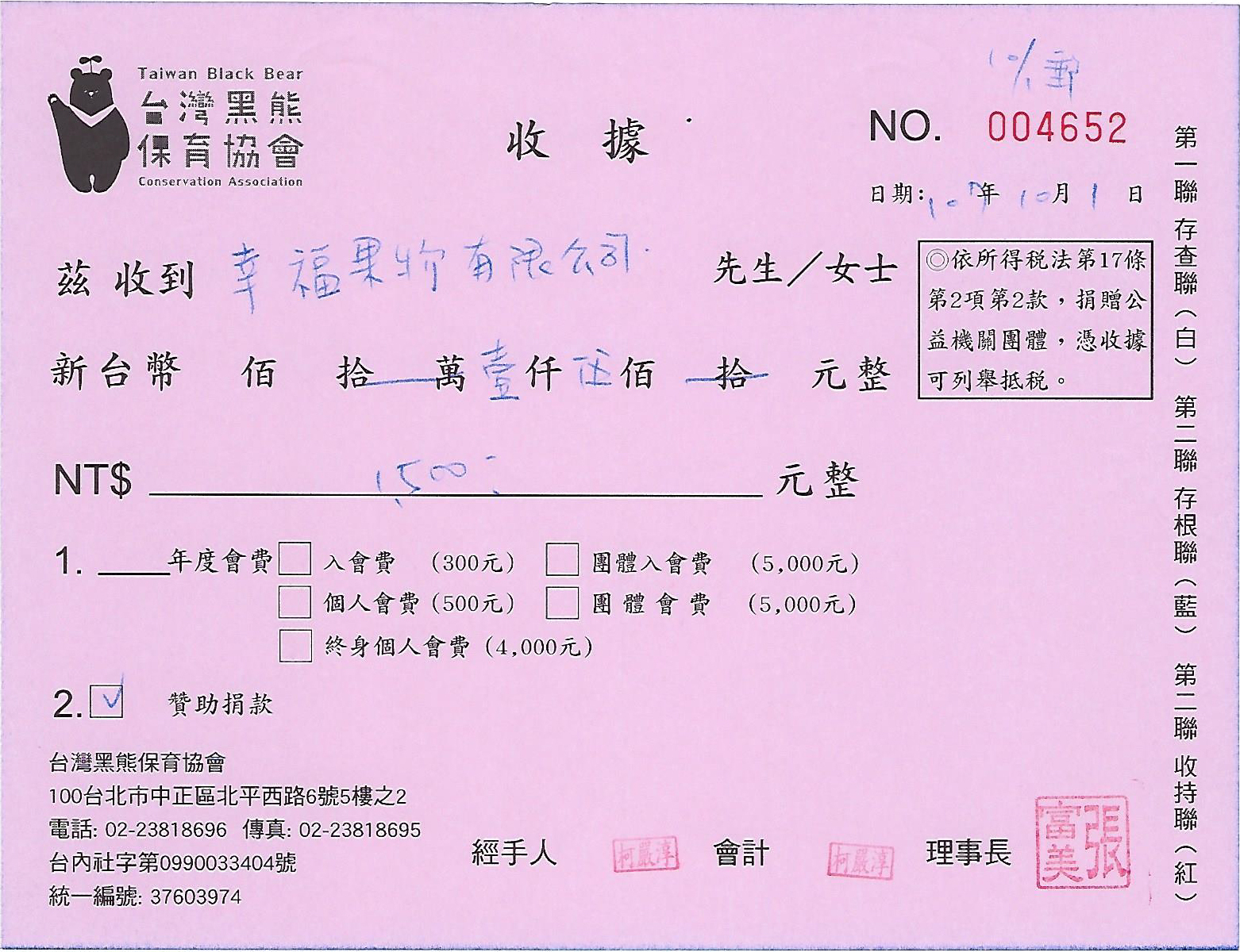幸福果舖x台灣黑熊保育協會 一塊做公益106年度(2017)活動捐贈