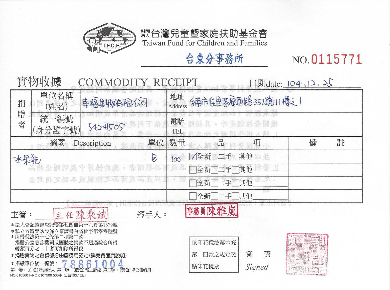 幸福果物 ® 有限公司 / 統一編號 54241505
