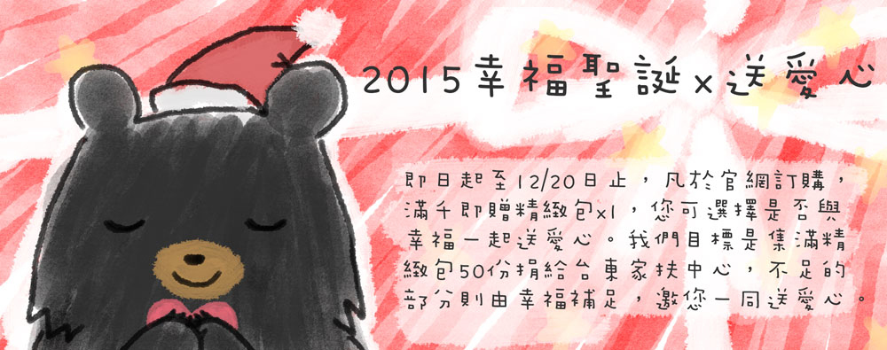 ***我們將於104/12/21(活動結束後隔日)進行統計,並於統計後隔日(12/22)進行寄送,12/23禮物即會抵達台東家扶: