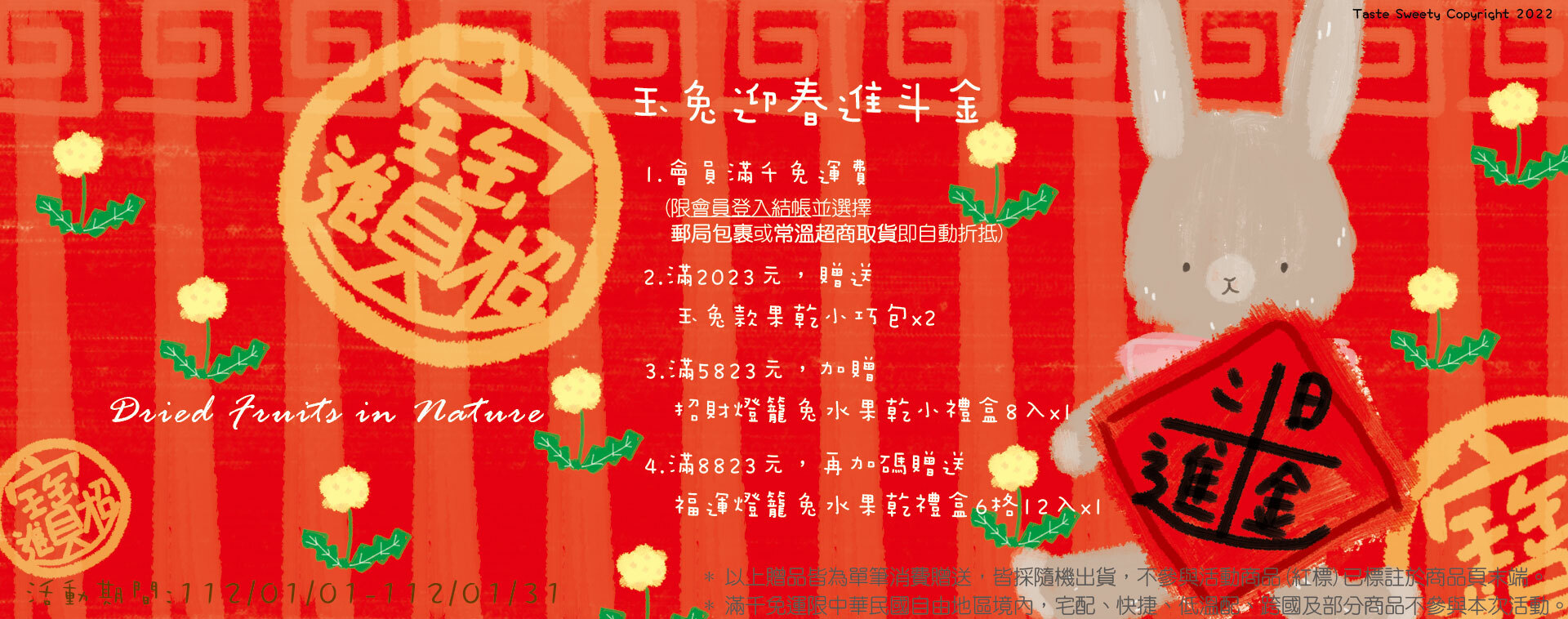 一月份活動:1月玉兔迎春進斗金 112/01/01-112/01/31