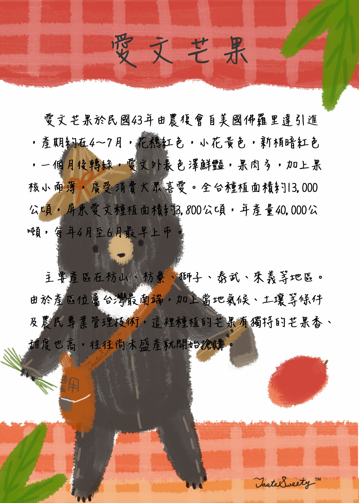 * 114年07月05日園區最新消息:114年期(2025)芒果產季已結束。產量銳減85%,2025最新價格已上線。
