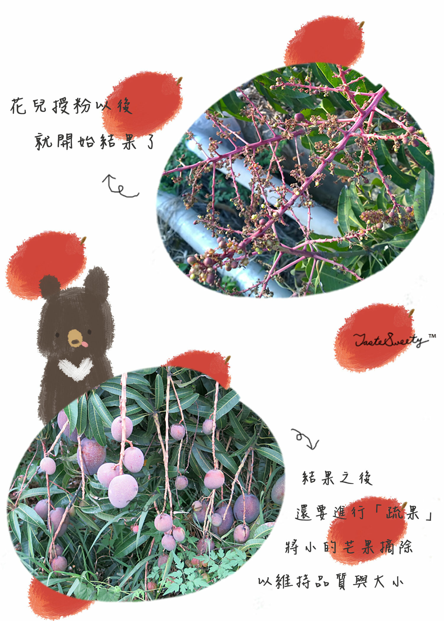 水果為天然農產,每顆鮮果會因成長的自然環境及生長條件不同(如日照、雨水、海風、落山風、焚風等),外觀呈色自然也就不一樣,且外皮多多少少都會有樹枝刮痕、黑點等,屬正常現象,不會影響食用。果農們皆有有多年的種植技術優勢及豐富的採收經驗,所以熟後依然是香甜好吃。