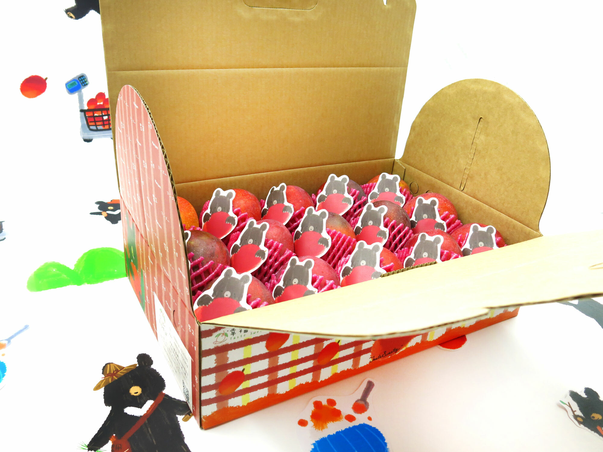 外箱搭配上可愛的黑熊與水果設計,誰說送禮不能傳統中又帶有創新?