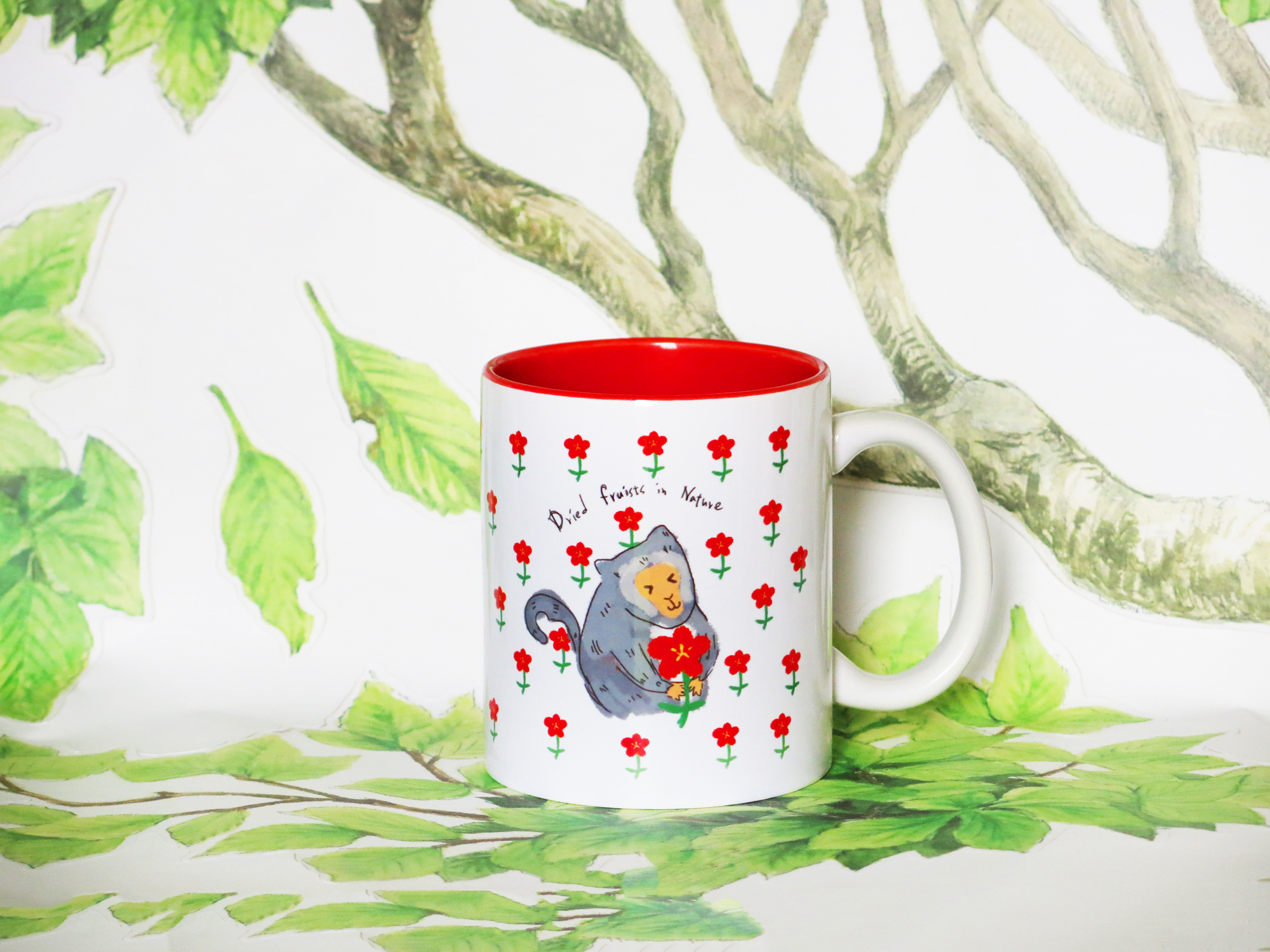 小花猴紅邊馬克杯