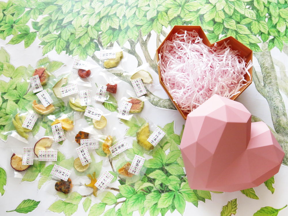 盒內物品:紙絲 (隨機配色) (可另加價購買果乾或其他周邊商品自行擺放入盒)。
